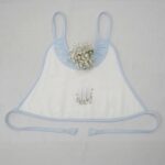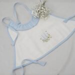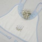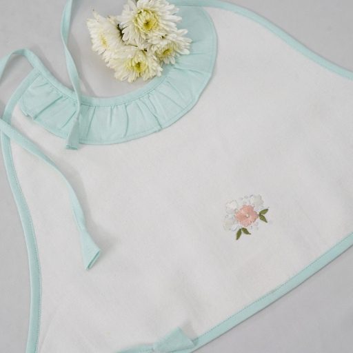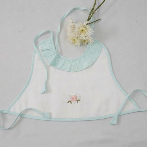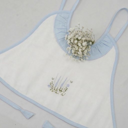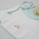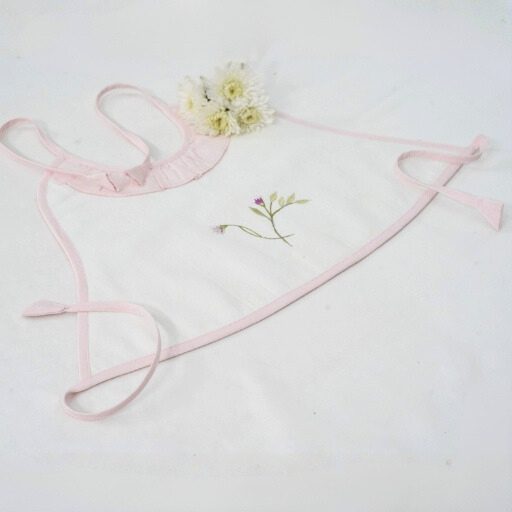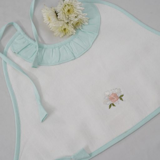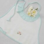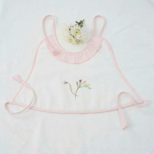Made from flannel soft cloth with double lining, the aprons are in pristine white with pastel shades of piping in blue, green, lemon, and pink. The Frills and the Coloured pipings on the pristine white aprons look absolutely gorgeous, further elevated with the most delicate and exclusive embroideriesβ€”making them one-of-a-kind pieces to possess and true heirlooms in every sense.