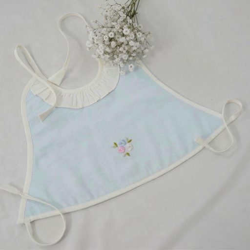 Made from flannel soft cloth with double lining, the aprons are in pastel hues of blue, green, lemon, and pink adorned with frills and soft piping on the classic aprons look absolutely gorgeous, further elevated with the most delicate and exclusive embroideriesβmaking them one-of-a-kind pieces to possess and true heirlooms in every sense.