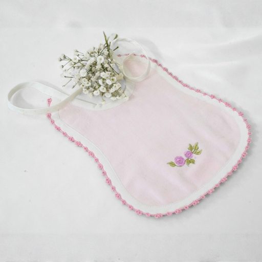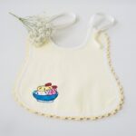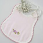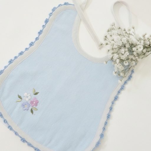 The base flannel comes in gentle pastel hues: blush pink, powder blue, lemon yellow, and garden greenβeach framed with the finest hand crochet delicately done along the hems. This thoughtful detailing lends every bib the grace of a timeless keepsake, one that mothers will cherish and treasure for years to come.
