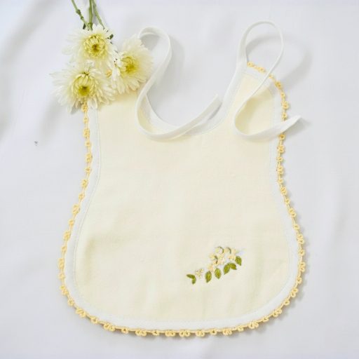 Made from the softest flannel, each bib is adorned with exquisite embroideryβan artful blend of delicate handwork and fine machine stitches. Every piece carries its own unique embroidery, making each bib an absolute one-of-a-kind designer treasure.