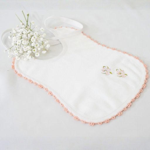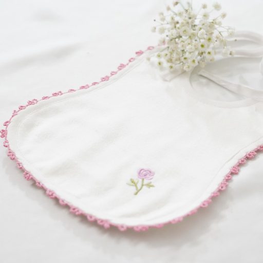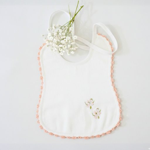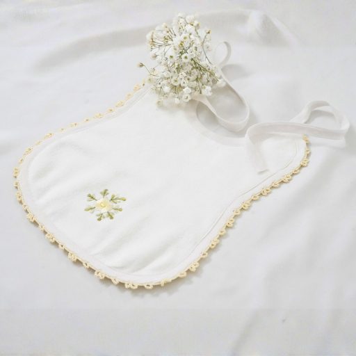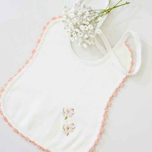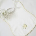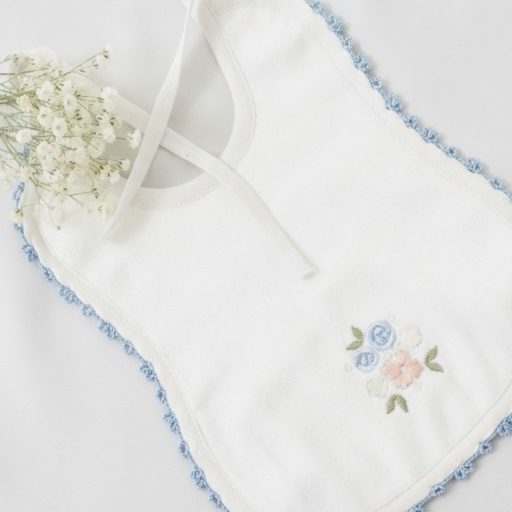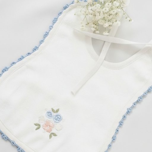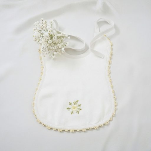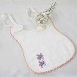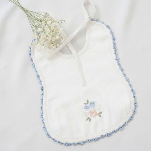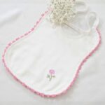 Made from the softest flannel, each bib is adorned with exquisite embroideryβan elegant blend of delicate handwork and fine machine artistry. Every piece carries its own unique embroidery, making each bib a true one-of-a-kind designer treasure.