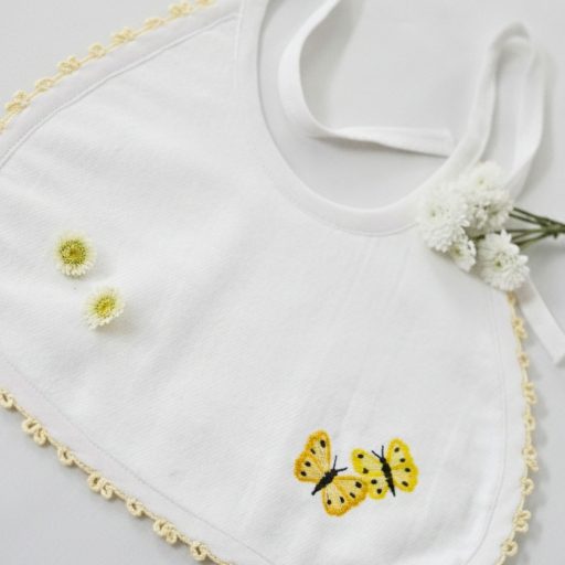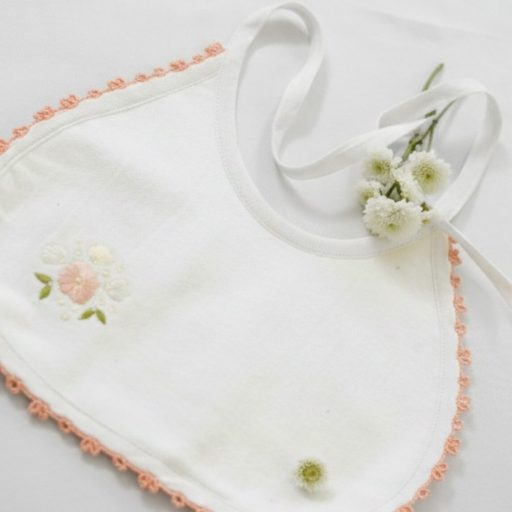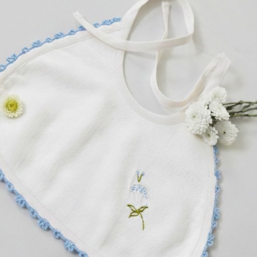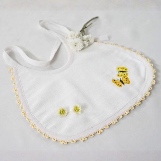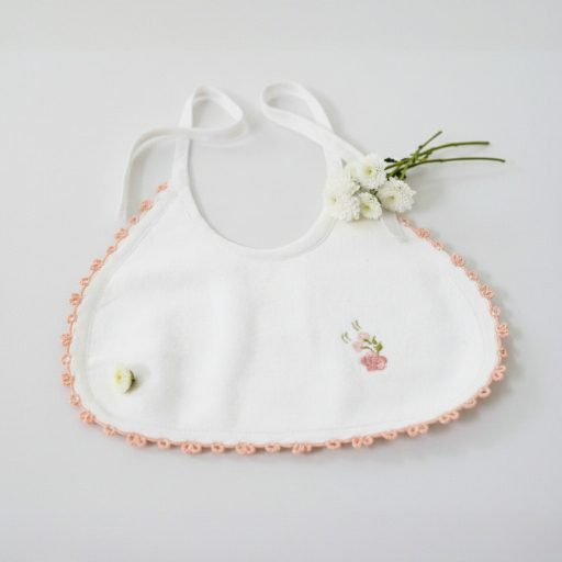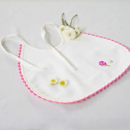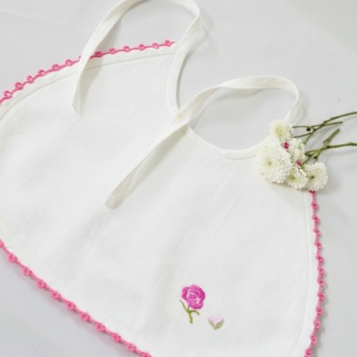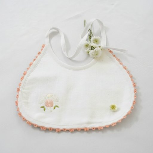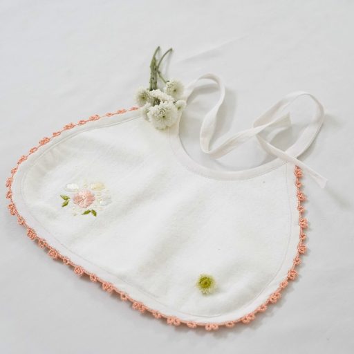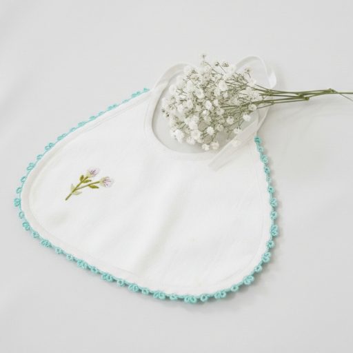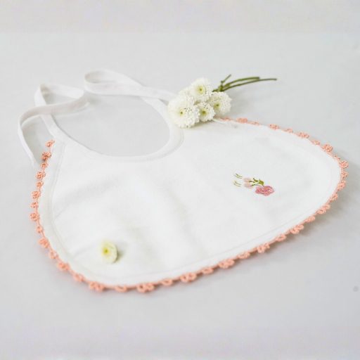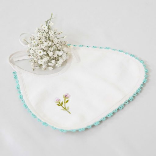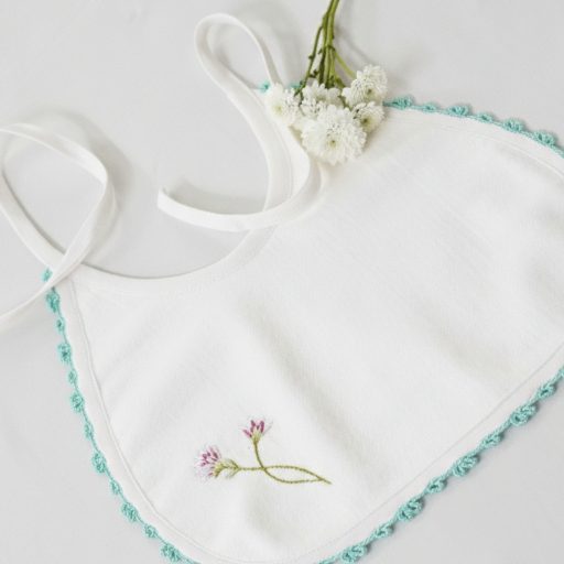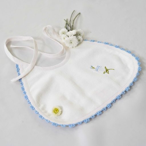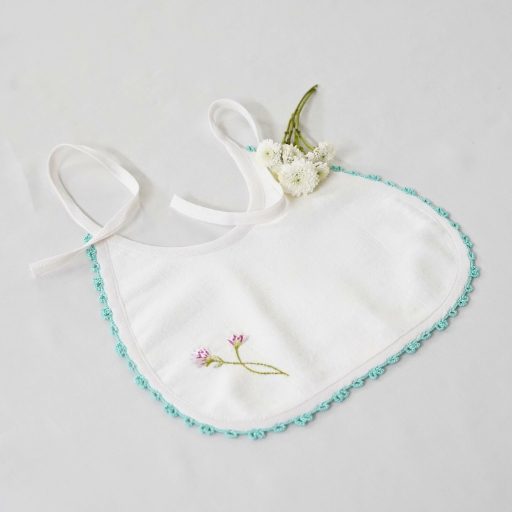 Baby-soft flannel, finished with the finest and most exquisite hand crochetβeach bib carries delicate embroidery, done exclusively to make every piece an absolute one-of-a-kind designer treasure.