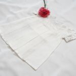 White Self-Woven Cotton Frocks With Victorian Necks &Box Pleates